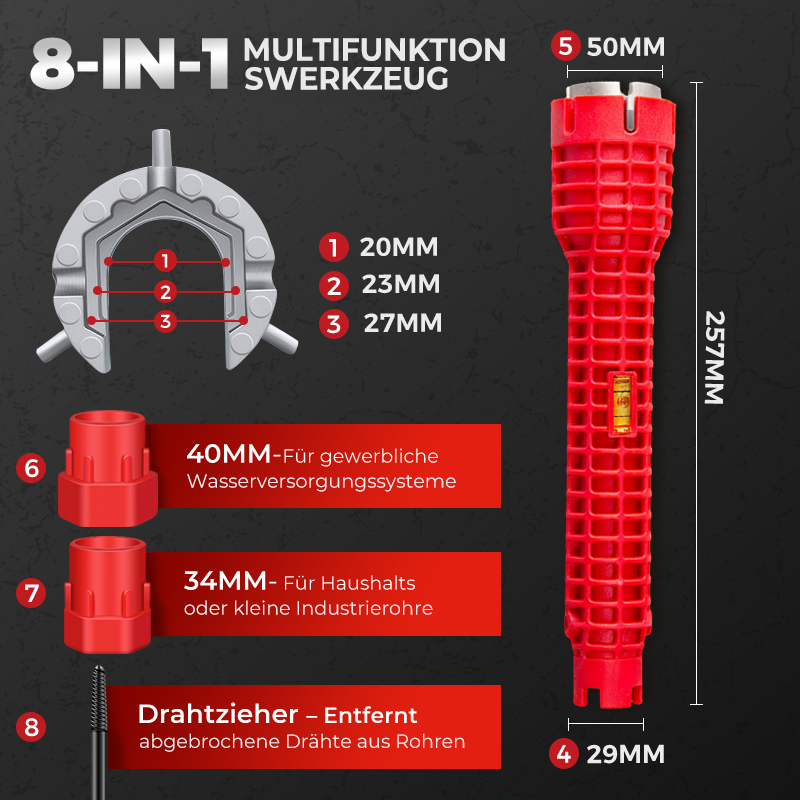 Multifunktionaler 8-in-1-Spülbeckenschlüssel